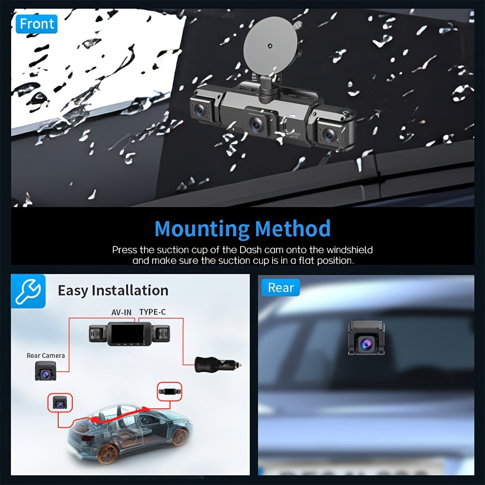 FOXGOD 4-Channel FHD 1080P Dash Cam with 5G WiFi, Super Night Vision, Parking Monitor, Loop Recording, G-Sensor - Supports 64GB Memory Card