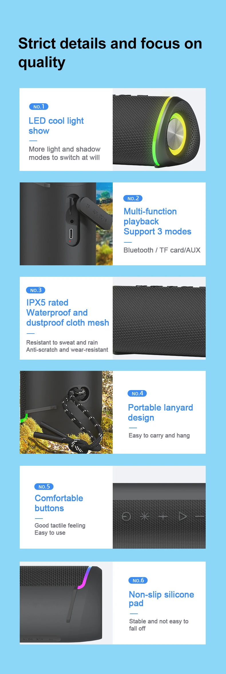 Heavy Deep Bass 3D Surround Outdoor IPX6 Waterproof Subwoofer Portable Bluetooth Wireless Speaker