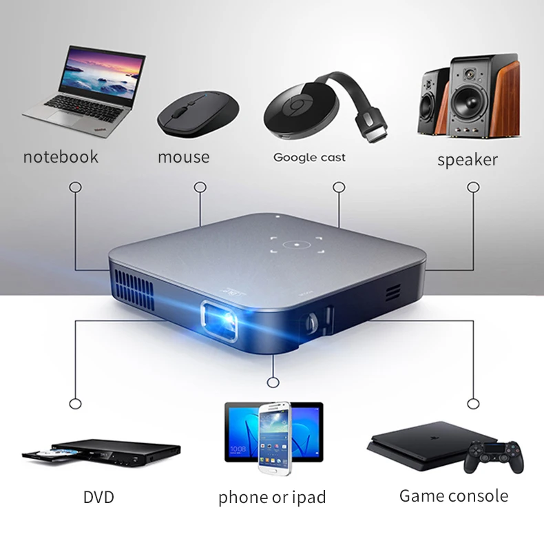 Smart Android 200 Lumens Mini Projector 5G Home Theater LED Video DLP Beamer 4K Max Built-in Portable Screen Mirroring Movie