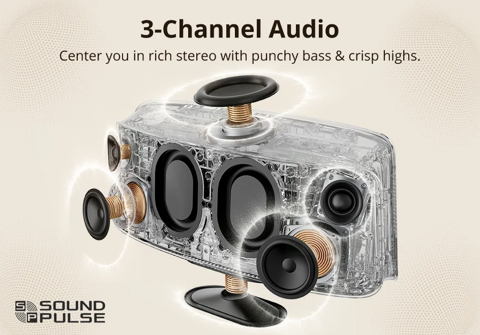 Center you in rich stereo with punchy bass & crisp highs.